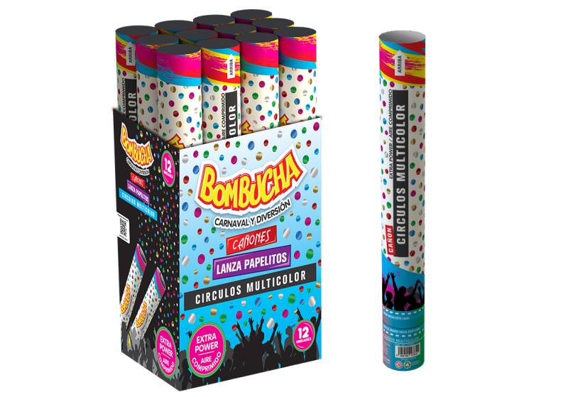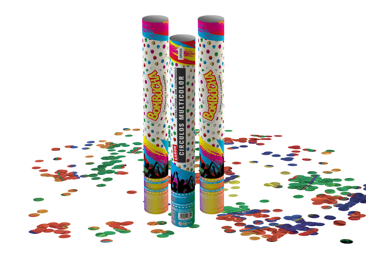 CAÑON LANZAPAPELITOS CIRCULOS METALIZADOS MULTICOLOR