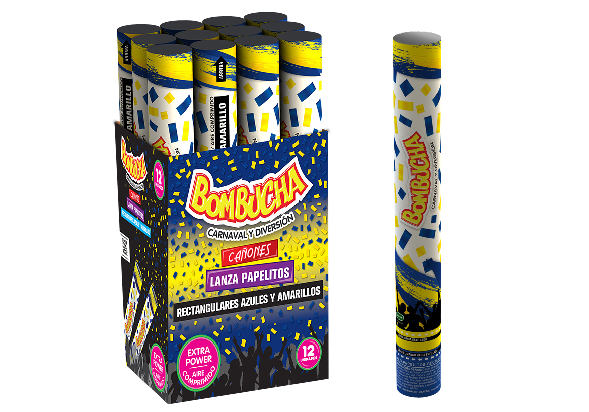 CAÑON LANZAPAPELITOS RENTANGULARES AZUL Y AMARILLO