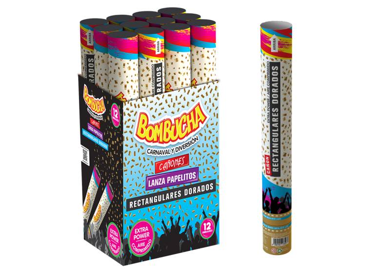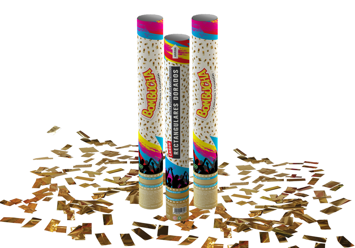 CAÑON LANZAPAPELITOS RENTANGULARES METALIZADOS DORADOS