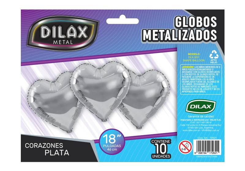 CORAZON PLATA 18 PULGADAS DILAX METAL | GLOBOS METALIZADOS FOIL