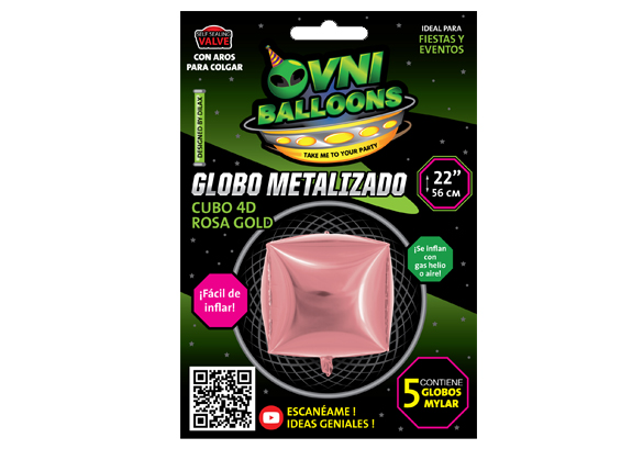 CUBO 4D ROSA GOLD 22 PUL CUBOS 4D | FORMAS | OVNI BALLOONS | GLOBOS METALIZADOS FOIL
