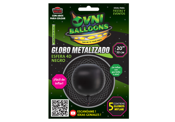 ESFERA 4D NEGRA 22 PUL ESFERAS 4D | FORMAS | OVNI BALLOONS | GLOBOS METALIZADOS FOIL