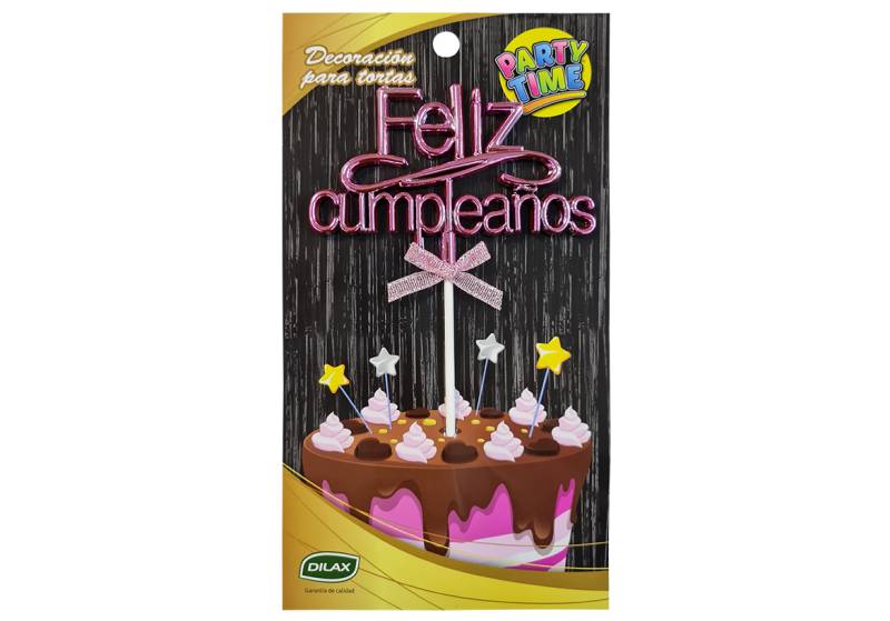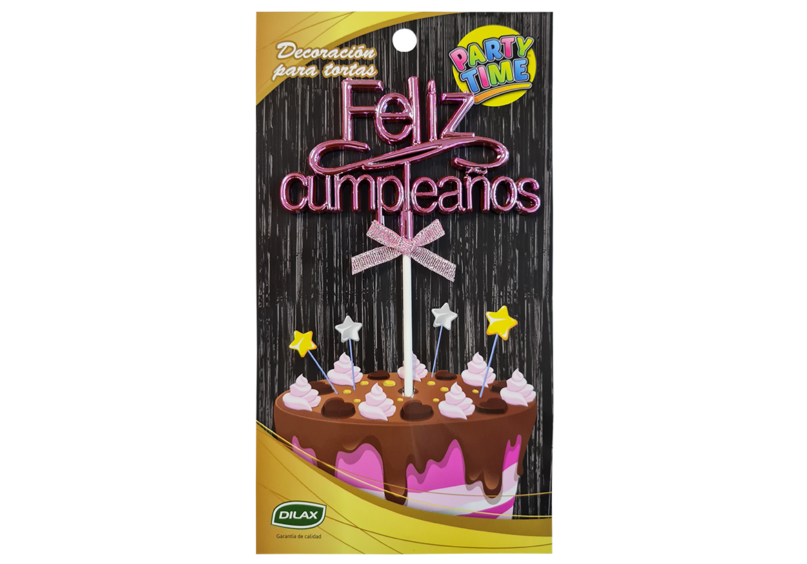 TOPPER PARA TORTA FELIZ CUMPLEAÑOS ROSA